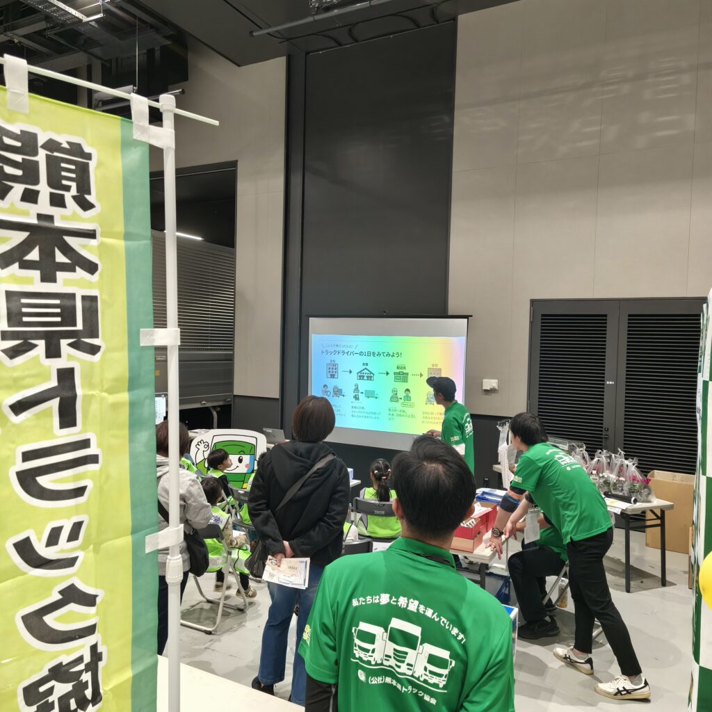 熊本県トラック協会も参加し、運送会社の仕事の魅力を小学生たちに紹介しました。